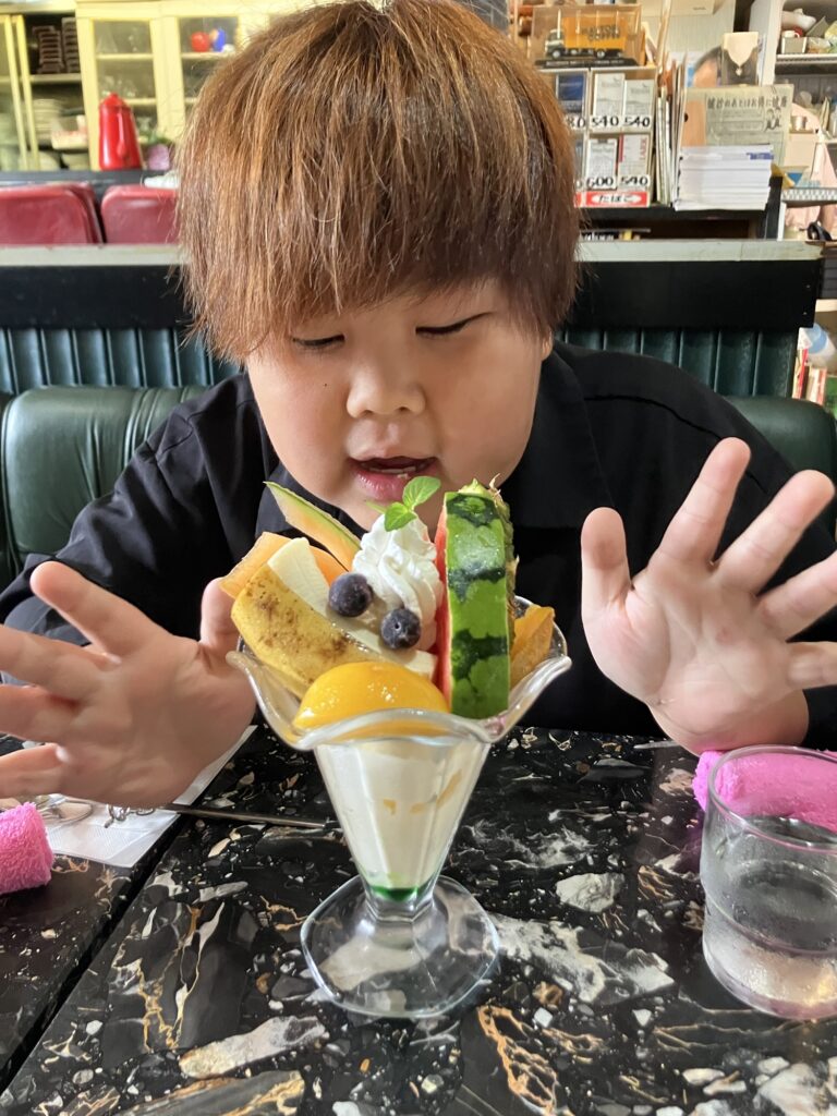 本当はここにいちごも入れたかったらしいのですが、いちごミルクにトッピングしてしまったのでパフェのいちごはおあずけだそうです(笑)