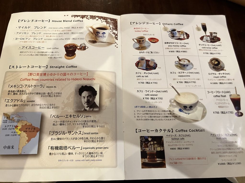 野口英世が左手の手術を受けた後に書生として住み込みで働いた会陽医院の建物を回収した店舗という、とても歴史のある老舗の喫茶店です。