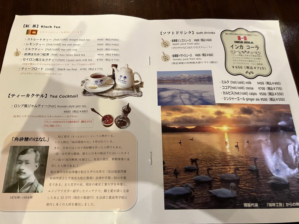 会津磐梯山の湧水を使用したダッチ珈琲や、会津のはちみつを使用したはちみつ珈琲などの地ドリンクから、野口英世にゆかりのある国々のコーヒーまで、様々なコーヒーが楽しめます。