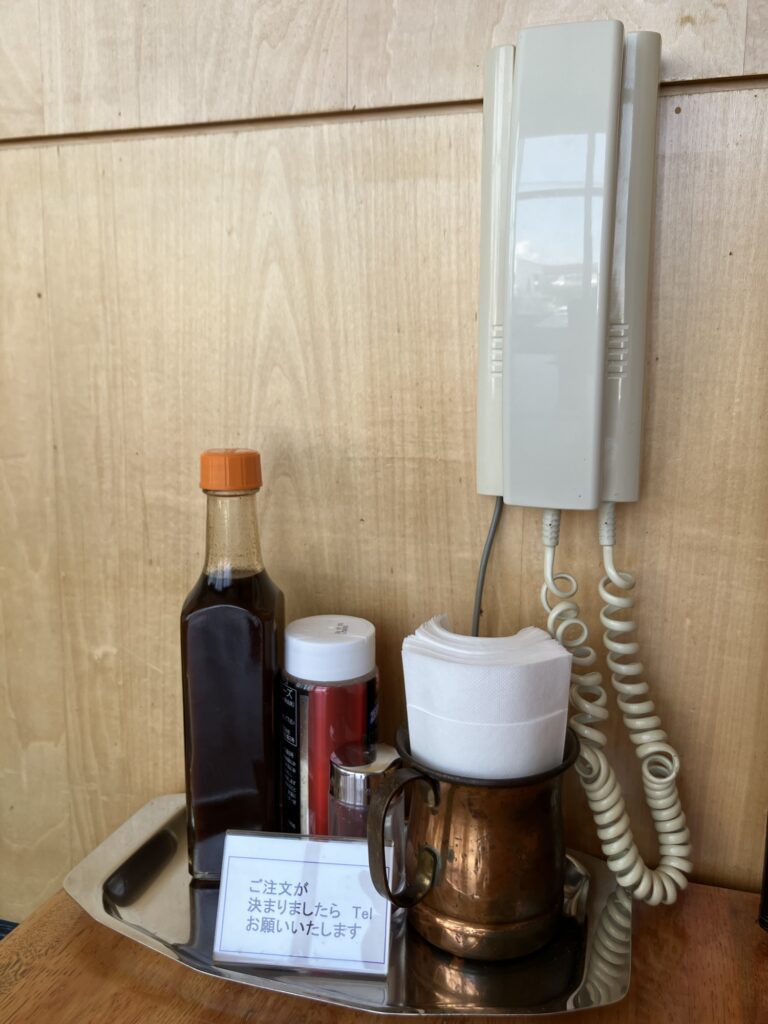 注文が決まったらテーブル脇についている電話で注文をするスタイル。