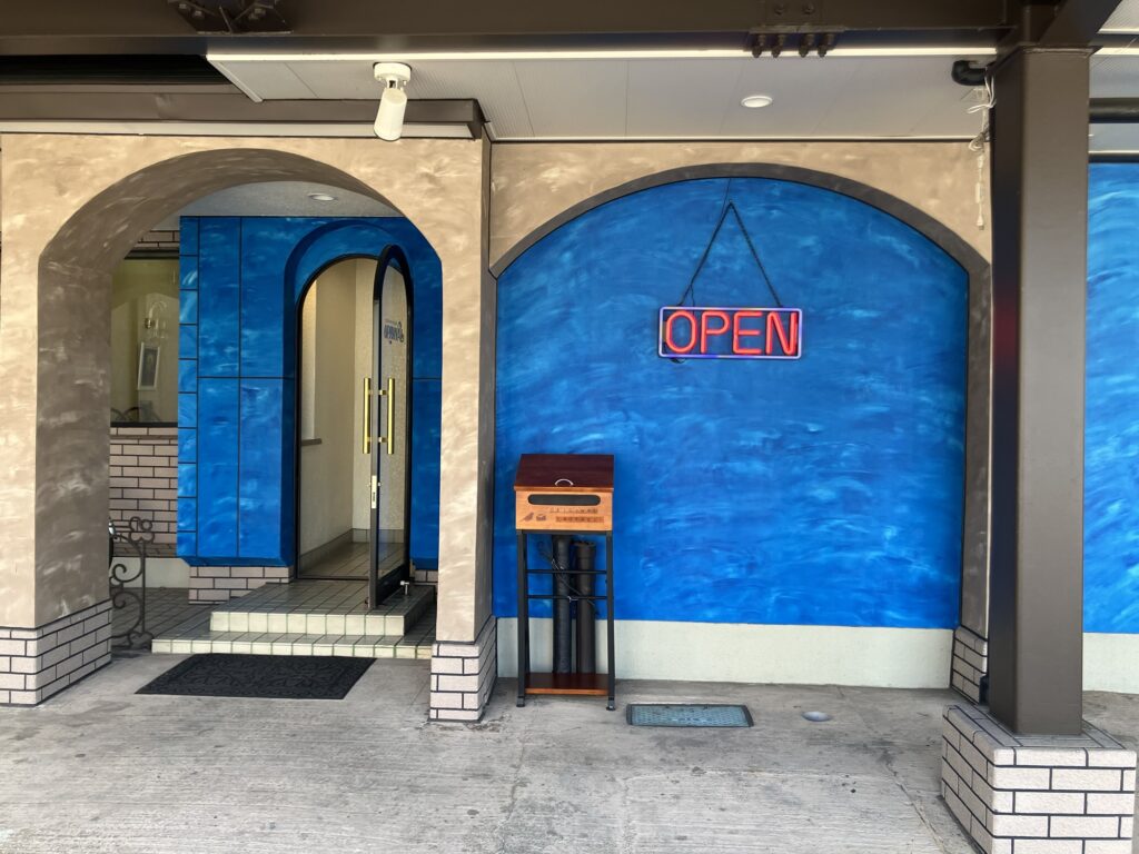 ファサードの外壁が鮮やかなブルーに塗り替えられていました。